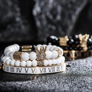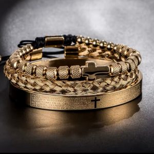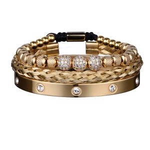 3pc Double Leopard Head, Roman Numeral Bracelet Set