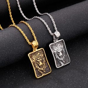 Lion Portrait Dog Tag Pendant