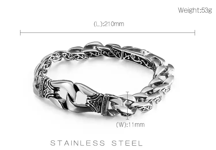 21cm 316L Stainless Steel Curved Curb Link Chain Bracelet