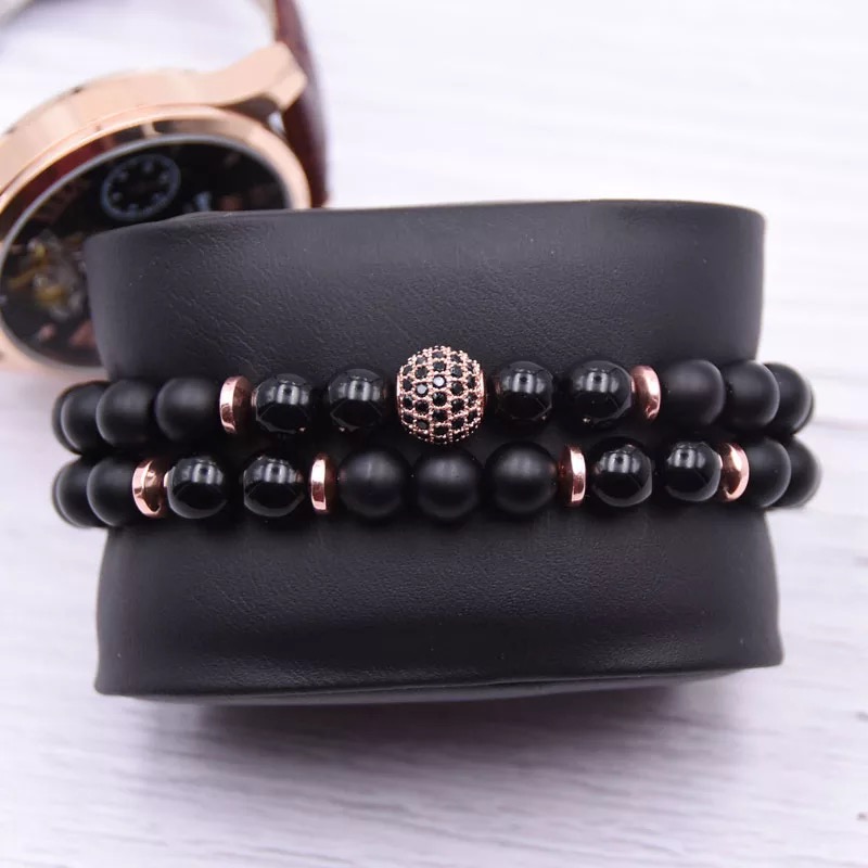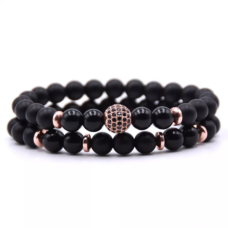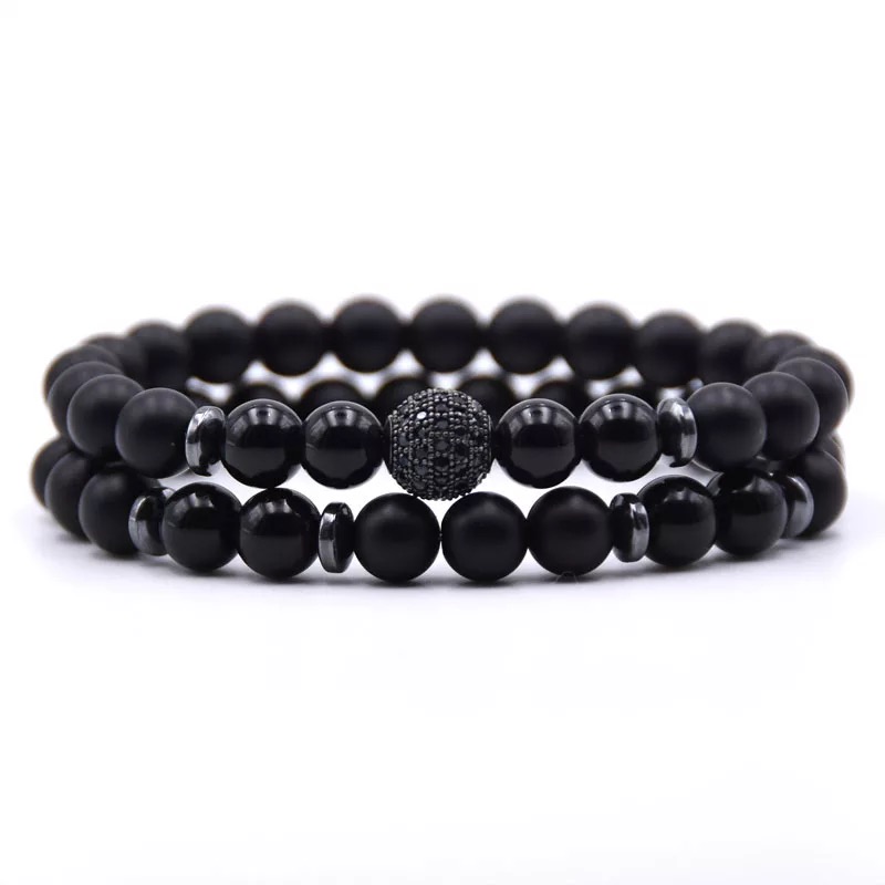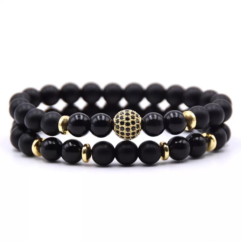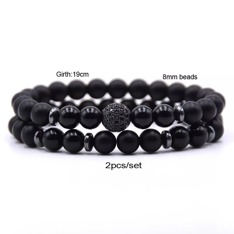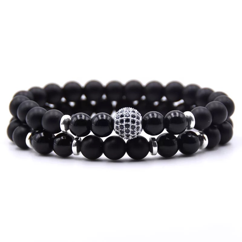 2pc/Sets 8mm Natural Stone Micro Pave CZ 10mm Disco Ball Charm Bracelet