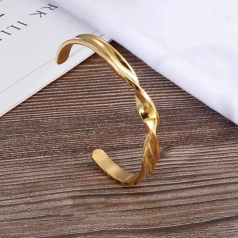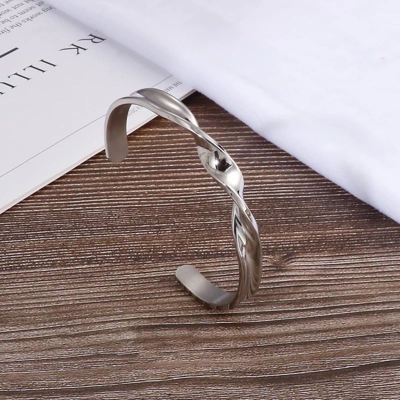 316L Stainless Steel Twisted Open Cuff Bracelet