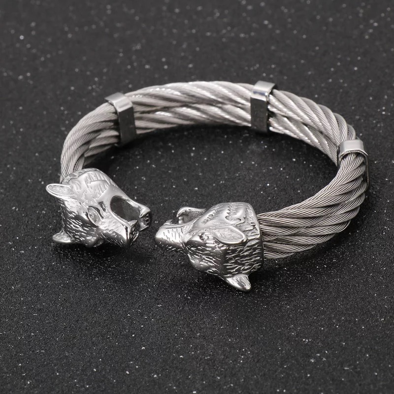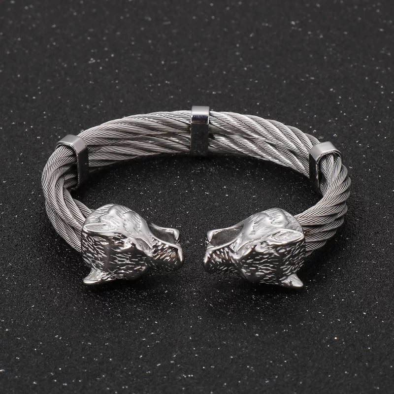 316L Stainless Steel Vikings Wolf Cuff Bracelet