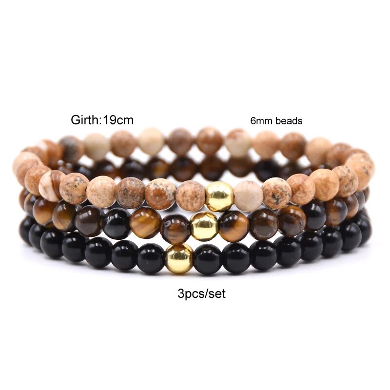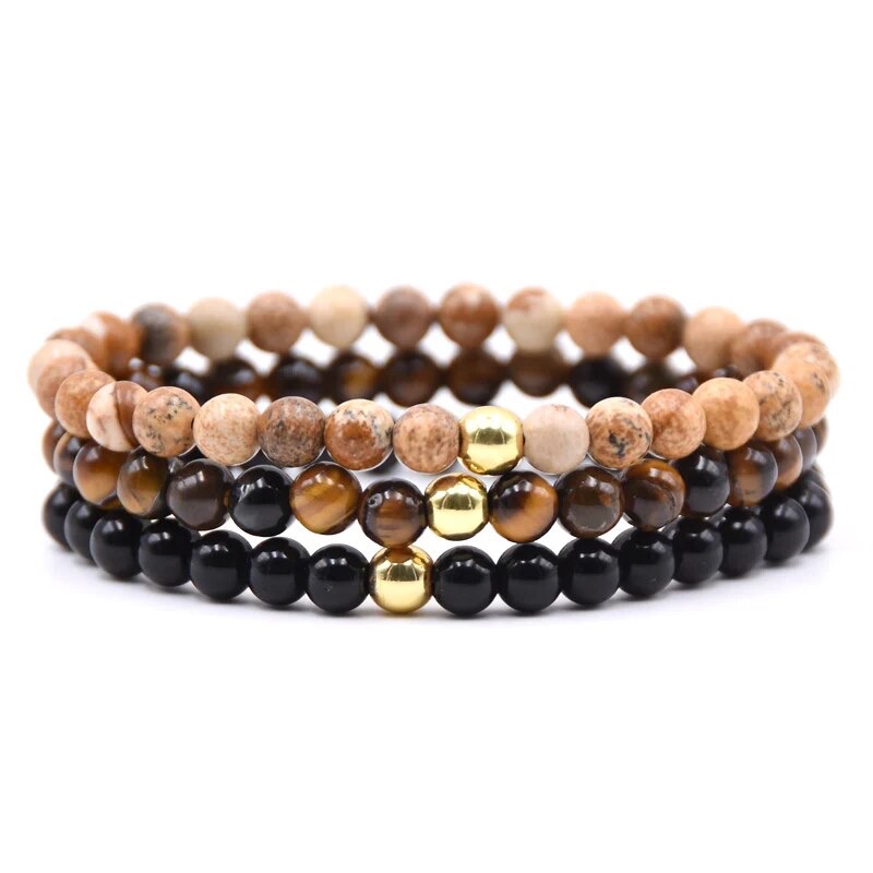 Adjustable, Beads, Black, Bracelets, Brown, Natural Stone