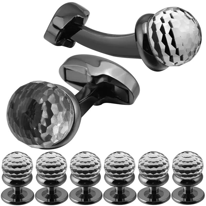 Classy Black Inlaid Crystal Cufflinks and Studs Set for Tuxedo Shirts and Kaftans