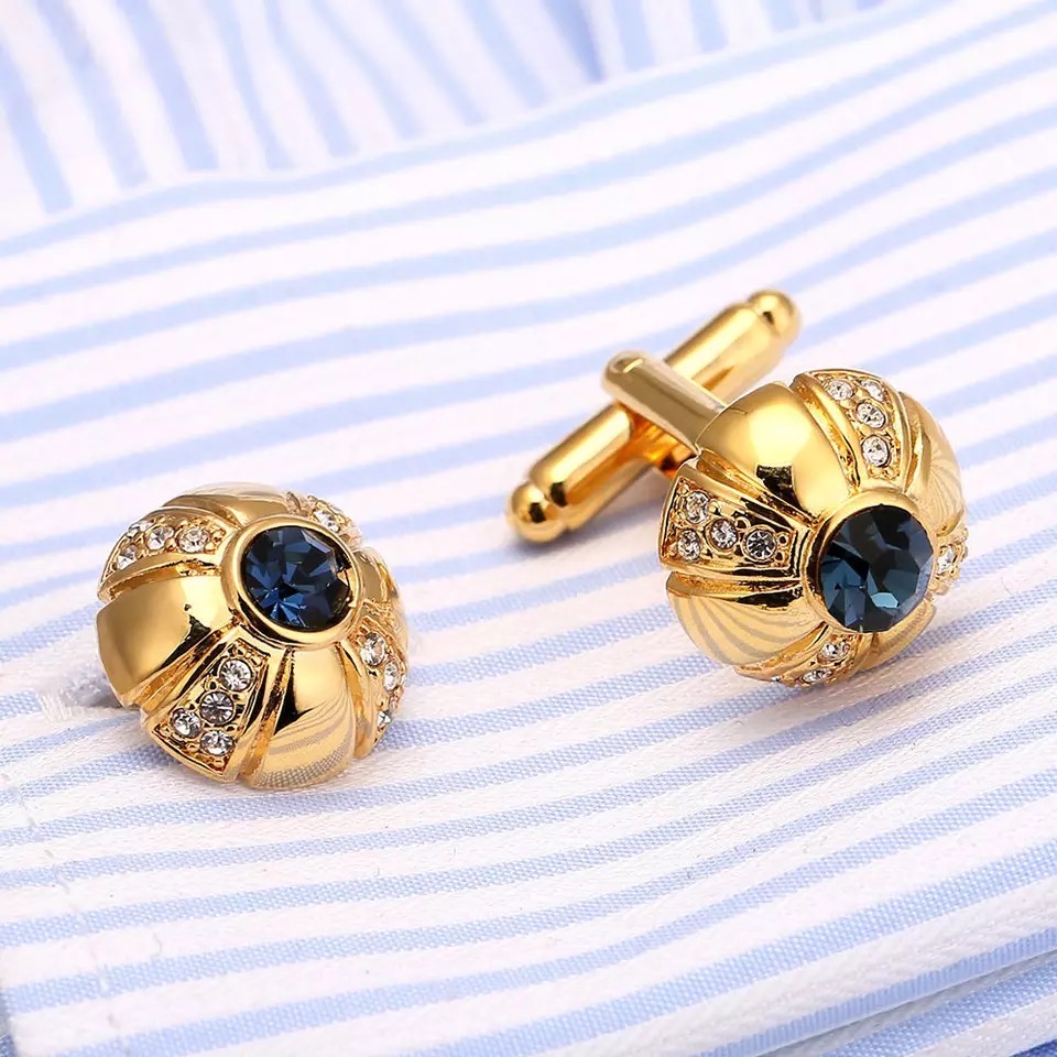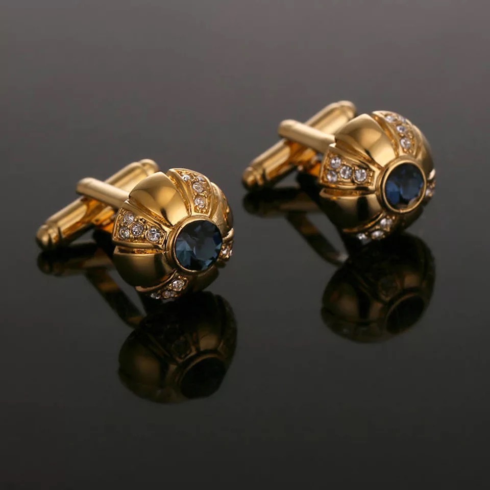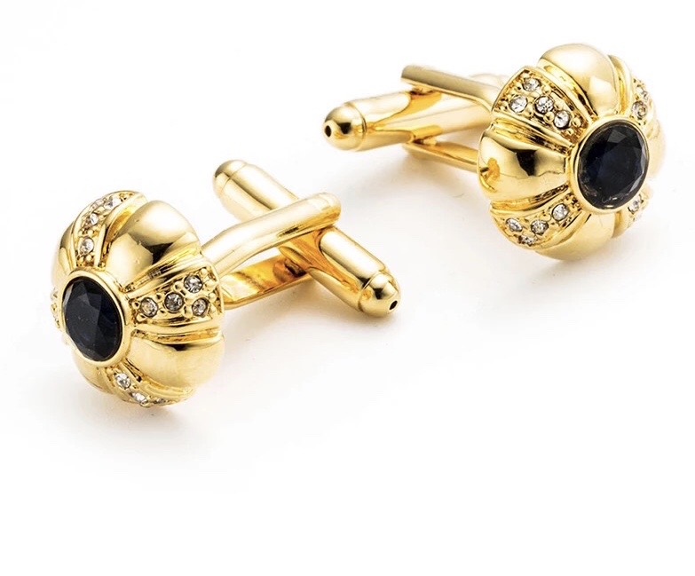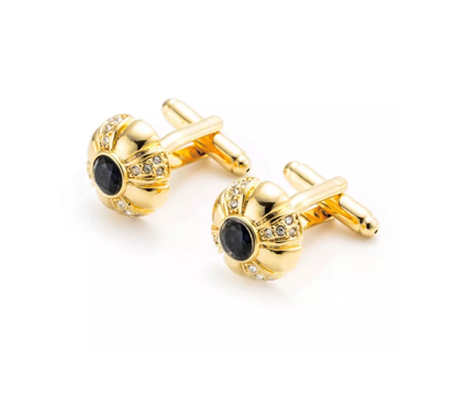 Gold Vintage Style Cufflinks with black crystal in the middle