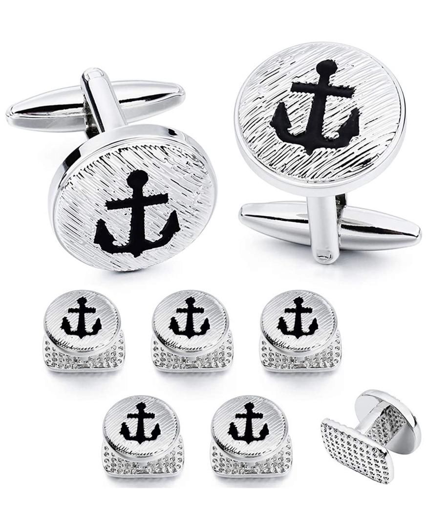 / High Quality Silver Anchor Design Cufflinks & Stud Set