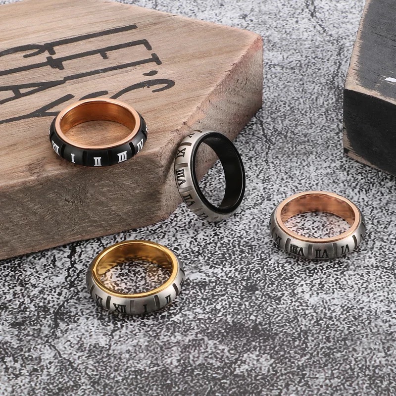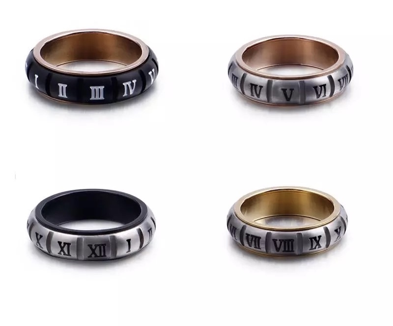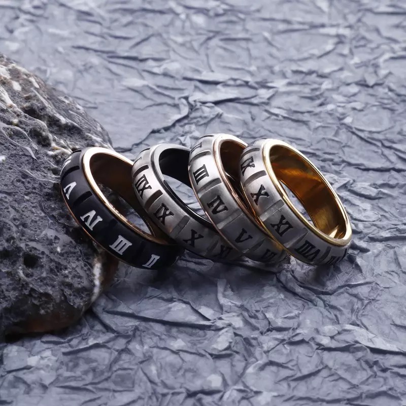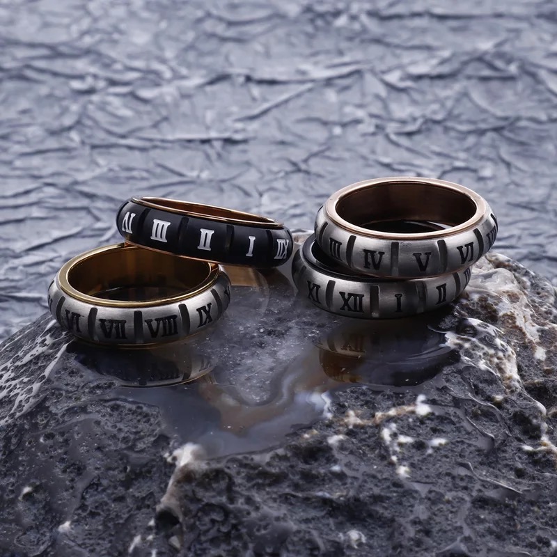 High Quality Stainless Steel Rotating Roman Numerals Rings