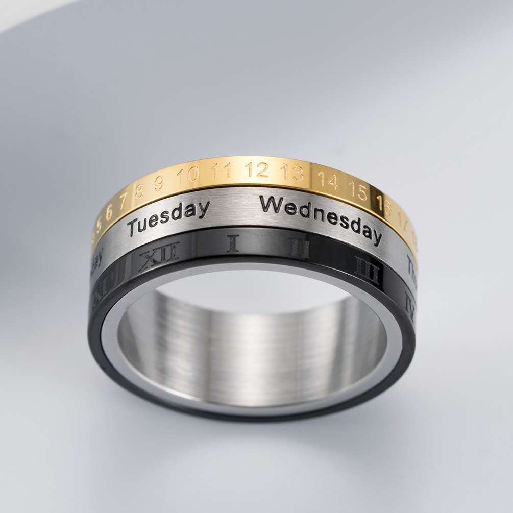 High Quality Stainless Steel Rotating Roman Numerals Rings