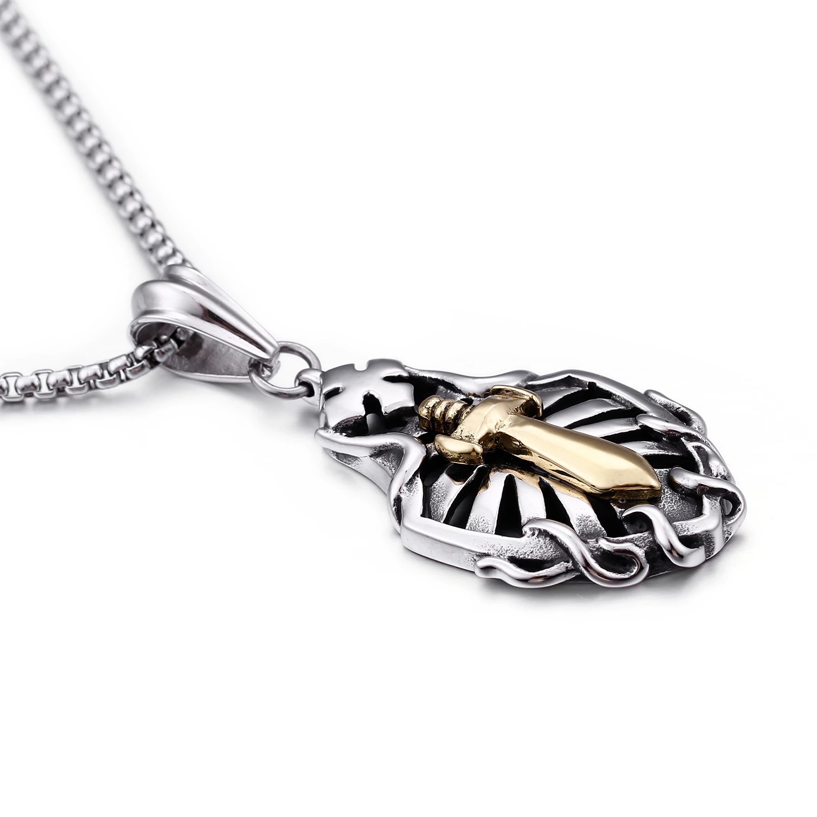 Hollow Shield Coptic Cross Sword Pendant