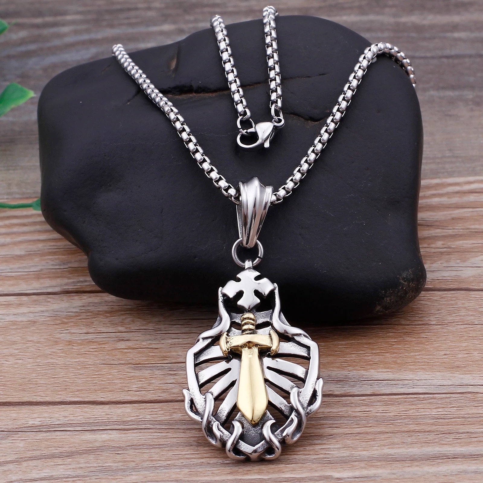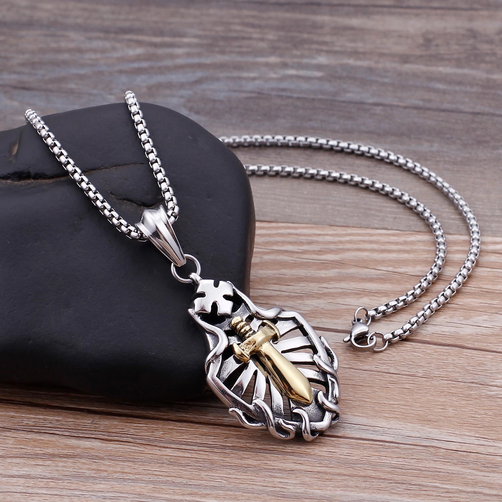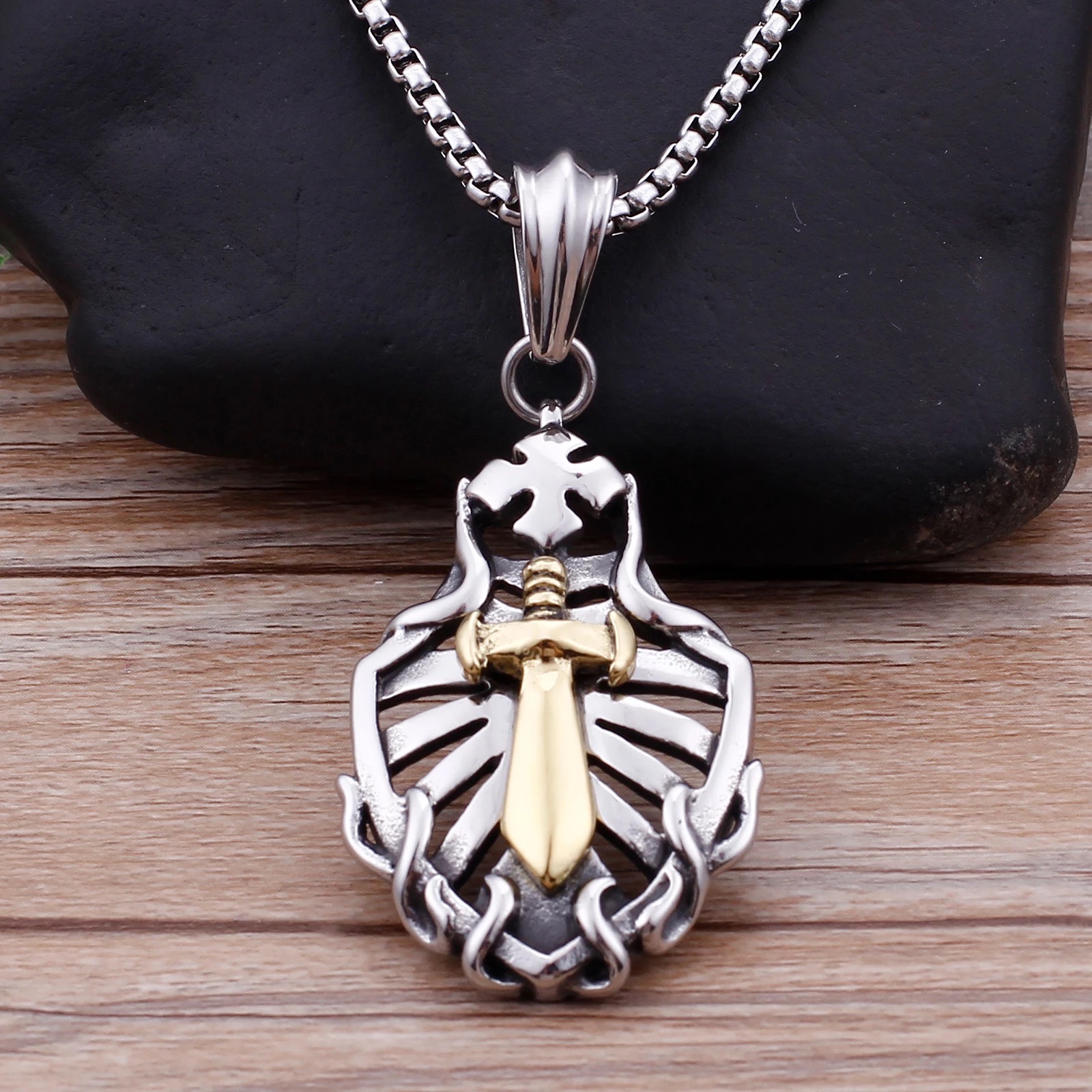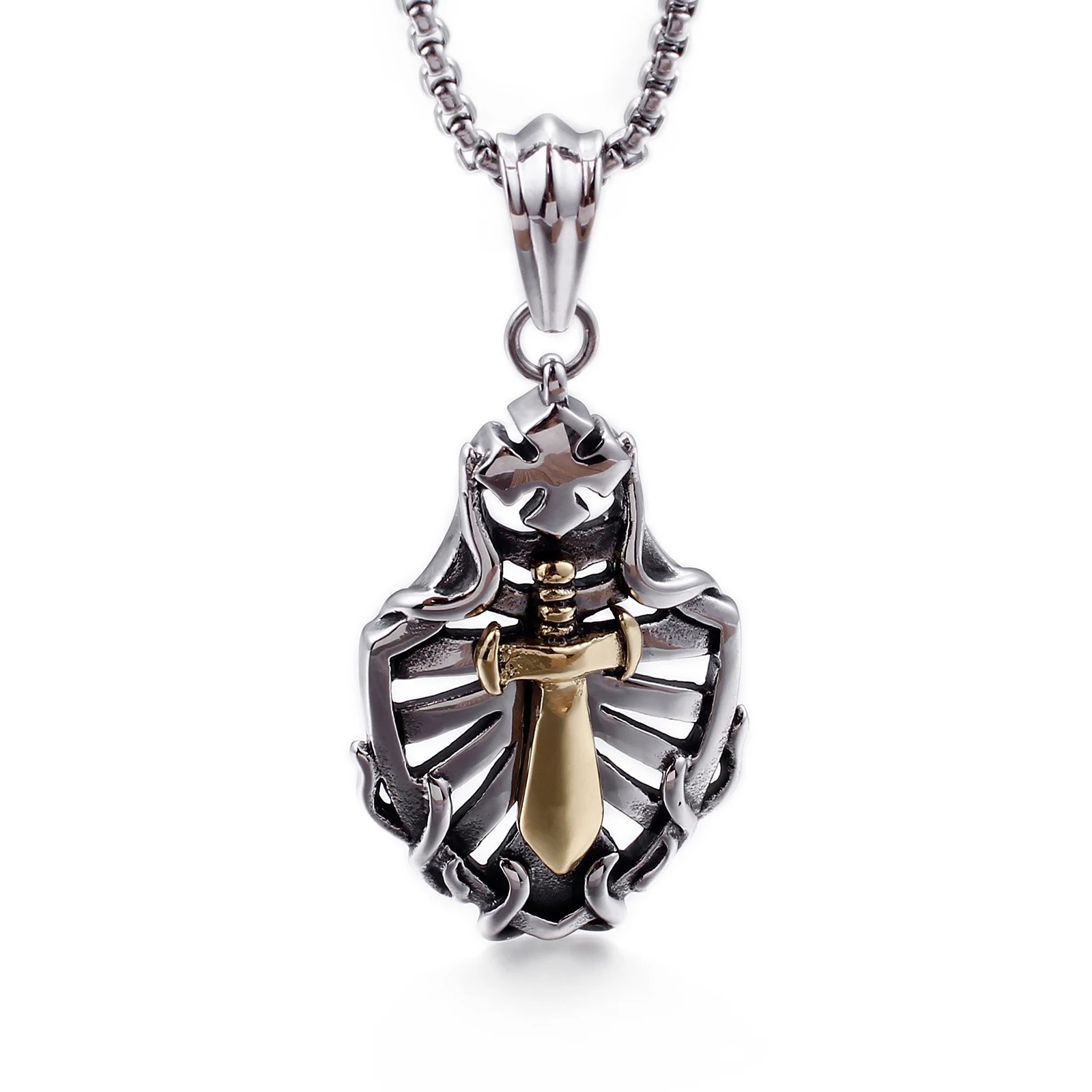 / Hollow Shield Coptic Cross Sword Pendant