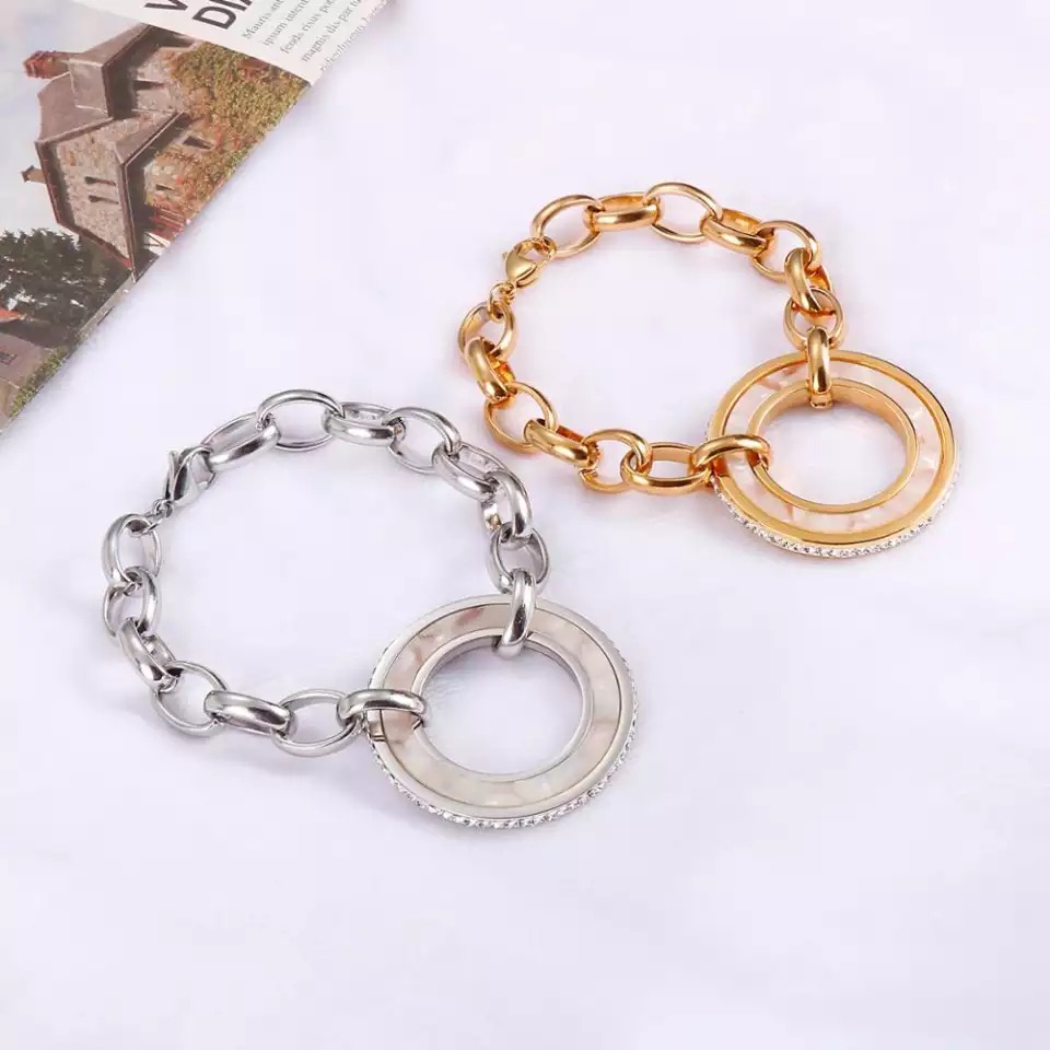 / Rolo Chain Lobster Claw Clasps Round Marble Bracelet
