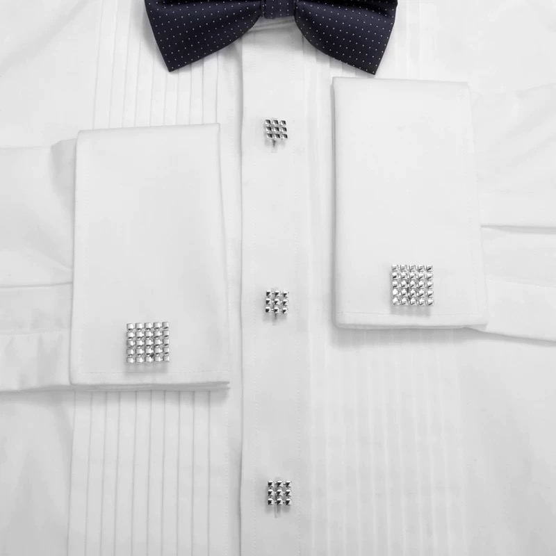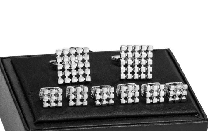 Silver Grid Cufflinks and Studs Set