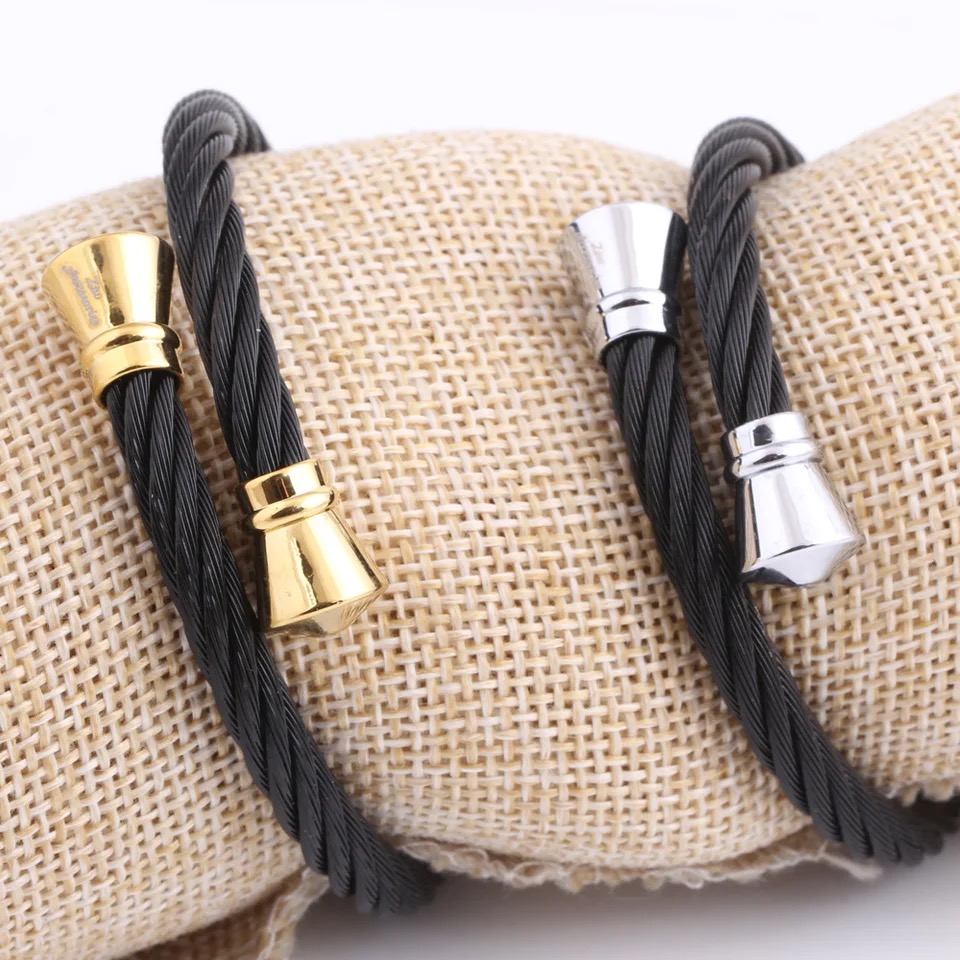 Simple black Titanium Steel Twist Cable Wire Bracelet