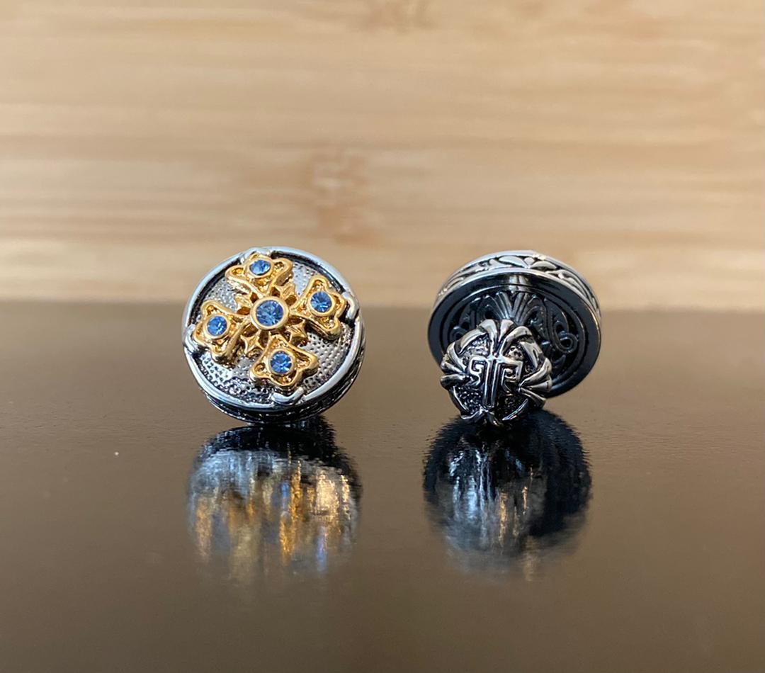 | Color | Silver base/Gold Cross/Blue Crystals, Black base/Gold cross/Silver crystals, Black Base/Black Cross/Black Crystals, Gold Base/Silver Cross/Blue Crystals, Black Base/Silver Cross/Silver Crystals, Black Base/Gold Cross/Black Crystals |