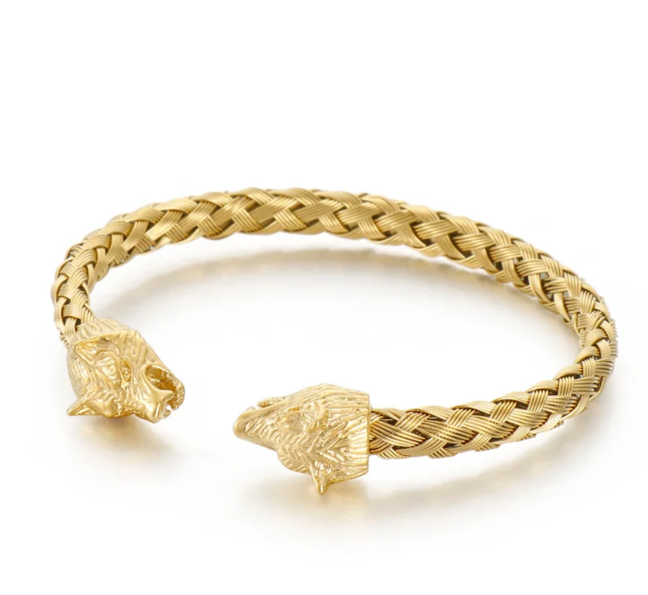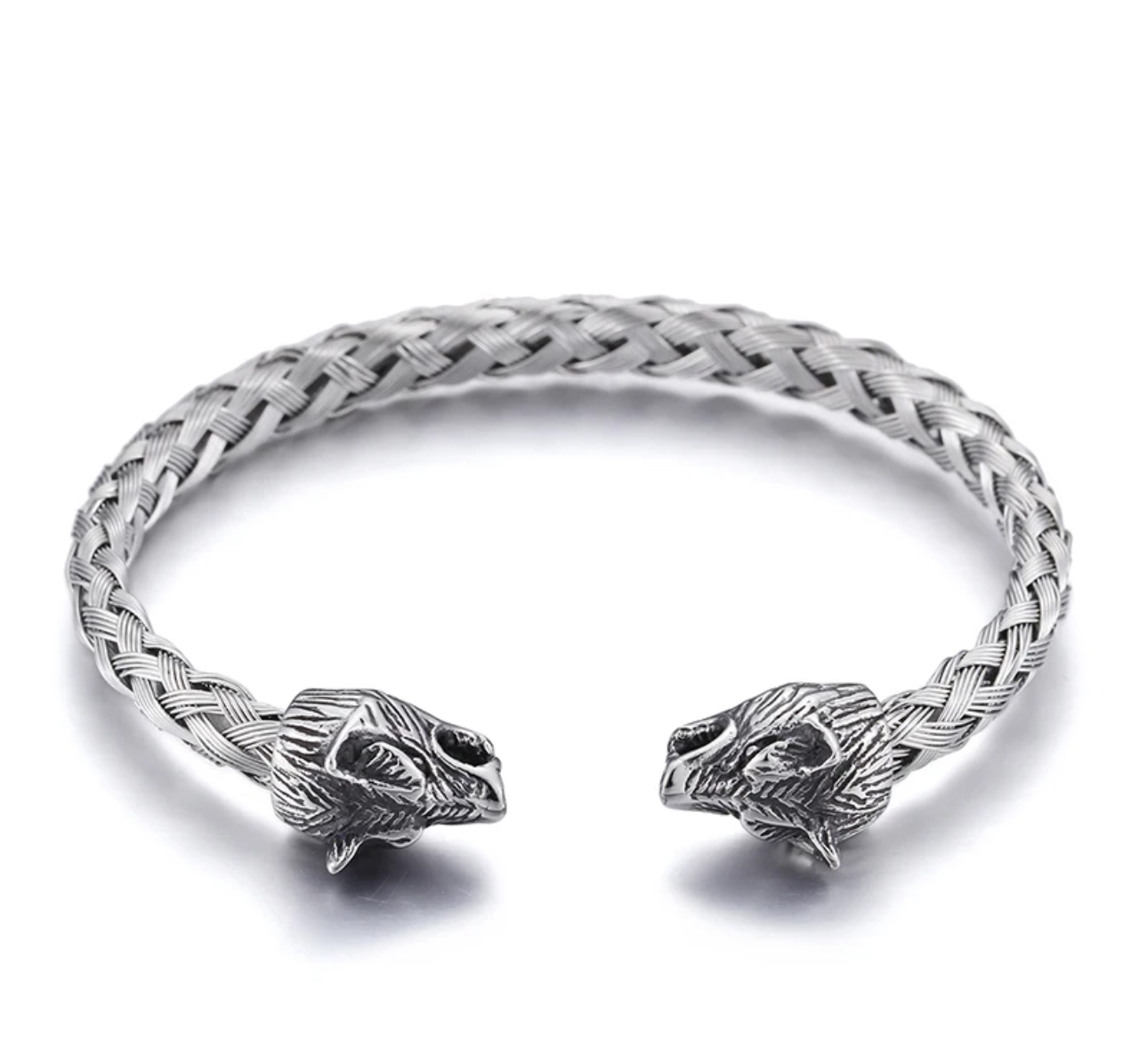 Be the first to review “Woven Steel Double Wolf Head Bracelet”