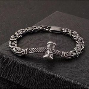 23cm Heavy Vintage Oxidation Black Stainless Steel Bracelet